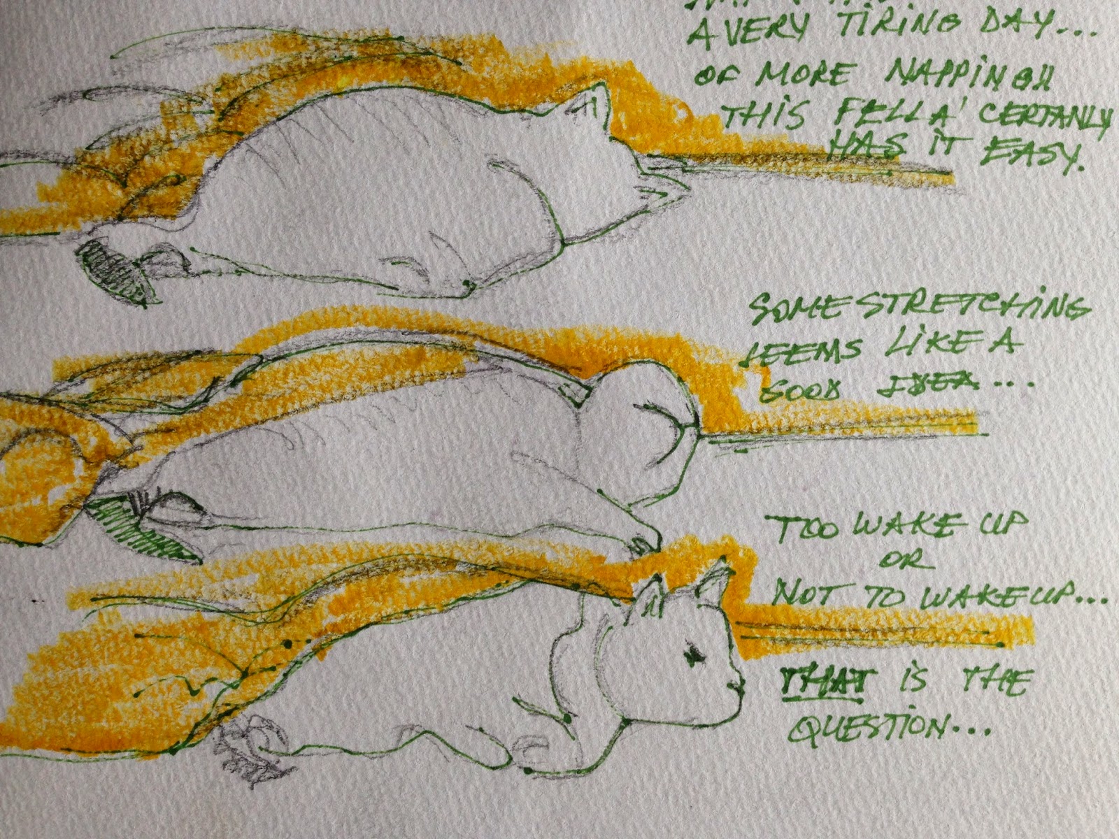 The other day, I caught The Cat during his afternoon nap. I grabbed a pen and sketched him quickly, it was as if he knew he was watched because he starting fussing around.